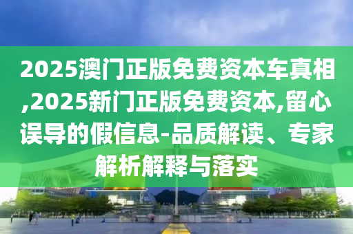 2025澳門正版免費資本車真相,2025新門正版免費資本,留心誤導的假信息-品質(zhì)解讀、專家解析解釋與落實