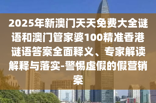 2025年新澳門天天免費大全謎語和澳門管家婆100精準香港謎語答案全面釋義、專家解讀解釋與落實-警惕虛假的假營銷案