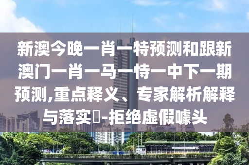 新澳今晚一肖一特預測和跟新澳門一肖一馬一恃一中下一期預測的重點釋義、專家解析解釋與落實?