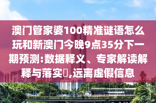 澳門管家婆100精準(zhǔn)謎語怎么玩和新澳門今晚9點35分下一期預(yù)測:數(shù)據(jù)釋義、專家解讀解釋與落實?,遠(yuǎn)離虛假信息